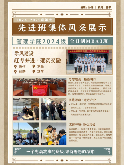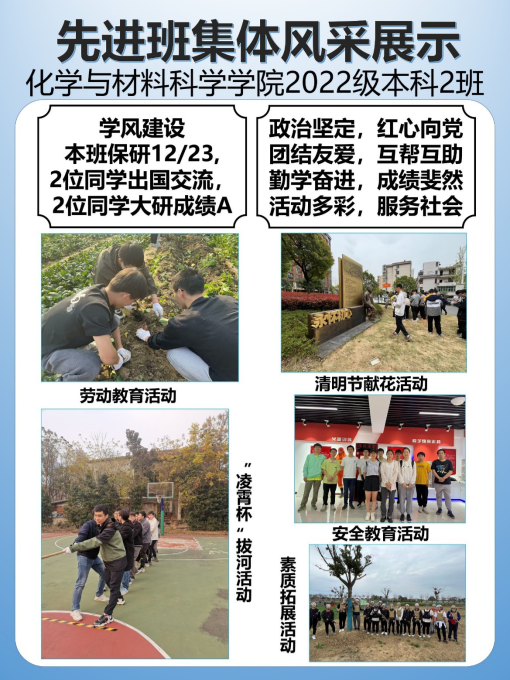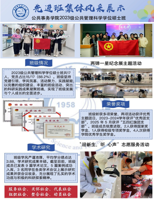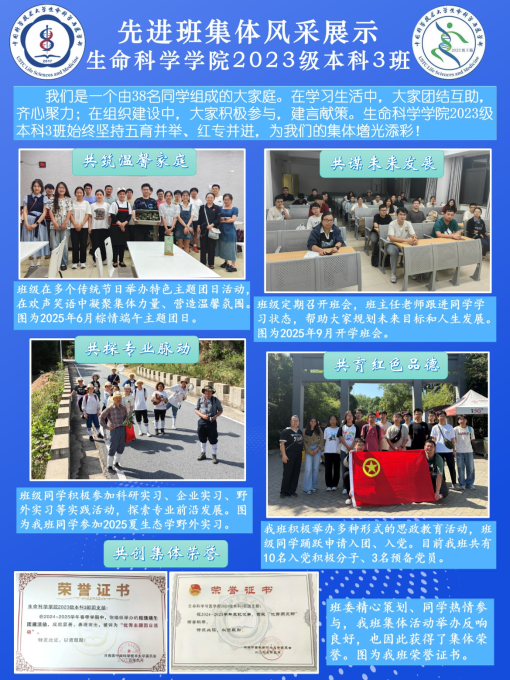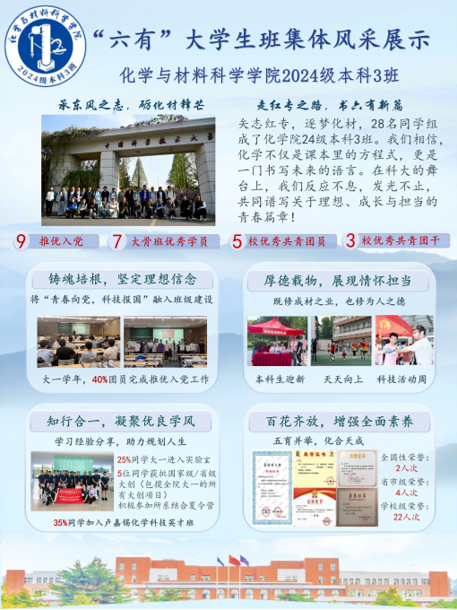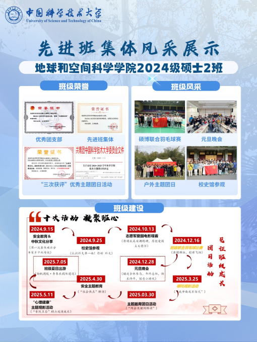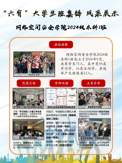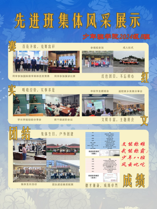 2024—2025学年度先进班集体及“六有”大学生班集体评选已结束,共有51个本科生班级和76个研究生班级获得“先进班集体”称号,其中6个班级获得“六有”大学生班集体称号,现将各获选班级风采展示如下。