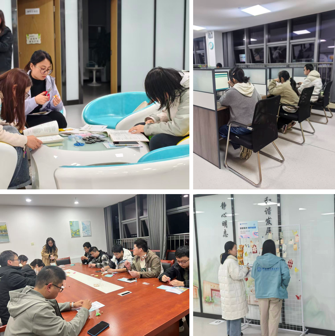 为了更好开展活动,心理中心面向全校招募12名同学担任开放周活动引导员和带领志愿者,并开展专题培训。11月22日,活动正式开始。开放周活动共设置6个主题环节:温暖相遇(中心打卡)、自我探秘(心理测评)、知识竞答(现场问答)、灵感解码(答案之书)、诗意碎片(拼字成诗)、情绪涂鸦(瓶中心语) 。每天开放时段,引导员同学带领大家了解中心的发展历史、专业咨询师团队以及咨询预约方式等,并引导同学参观了中心各种心理服务功能区。活动志愿者同学带领大家体验答案之书、拼贴诗和情绪瓶涂鸦活动。