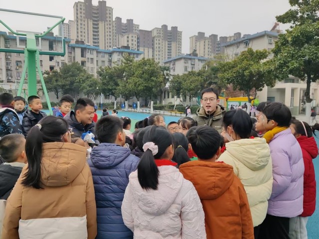 2025年12月24日上午10时,学工部处、人武部党支部组织青年理论学习小组走进合肥市南园学校北区,开展“行走的科学家精神微讲堂”快闪活动。本次活动继续以轻快、鲜活的形式,为小学生们讲述科学家的故事,播撒爱国与科学的种子。